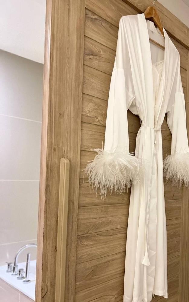 روب مصمم بقطعة من التفته الإيطالي وأكمام من ريش الناعمأوقاتك الخاصة يكتمل جمالها بإختيارك للقطعة المناسبة لها