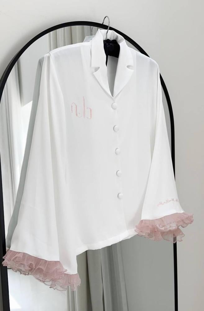 بجامة عروس بقطعة من التفتة الإيطالية والرافلز المميز أوقاتك الخاصة ويوم زفافك تساهل قطعة صممة خصيصا لك بكامل أناقتها